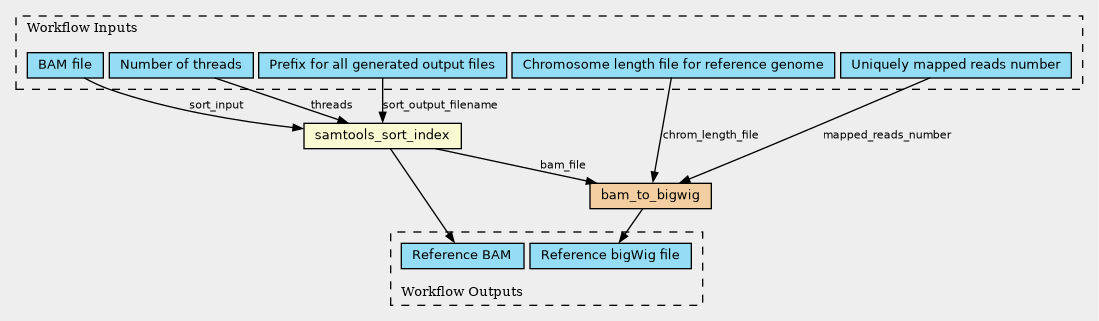 Workflow converts input BAM file into bigWig and bedGraph files |