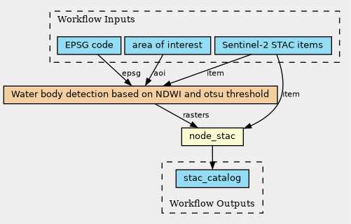 Workflow: Water bodies detection based on NDWI and otsu threshold