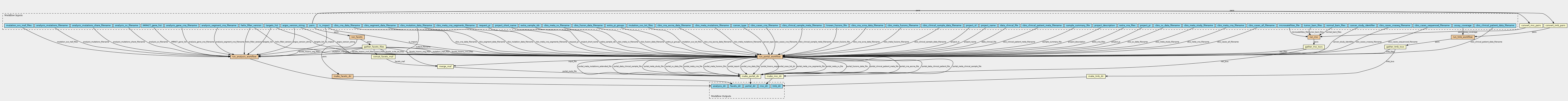 CWL workflow for generating Roslin / Argos post pipeline analysis files and cBioPortal data and metadata files This workflow includes Facets and Facets Suite usages Inputs ------ The following parameters are required: project_id project_pi request_pi project_short_name project_name project_description cancer_type cancer_study_identifier argos_version_string helix_filter_version is_impact extra_pi_groups pairs The following filenames are required: analysis_mutations_filename analysis_gene_cna_filename analysis_sv_filename analysis_segment_cna_filename cbio_segment_data_filename cbio_meta_cna_segments_filename The following filenames have default values and are optional: cbio_mutation_data_filename cbio_cna_data_filename cbio_fusion_data_filename cbio_clinical_patient_data_filename cbio_clinical_sample_data_filename cbio_clinical_sample_meta_filename cbio_clinical_patient_meta_filename cbio_meta_study_filename cbio_meta_cna_filename cbio_meta_fusions_filename cbio_meta_mutations_filename cbio_cases_all_filename cbio_cases_cnaseq_filename cbio_cases_cna_filename cbio_cases_sequenced_filename Output ------ Workflow output should look like this: output ├── analysis │ ├── <project_id>.gene.cna.txt │ ├── <project_id>.muts.maf │ ├── <project_id>.seg.cna.txt │ └── <project_id>.svs.maf ├── facets │ ├── <tumor_id>.<normal_id> (passed) │ │ └── <facets_files> │ └── <tumor_id>.<normal_id> (failed) │ └── <log_files> └── portal ├── case_list │ ├── cases_all.txt │ ├── cases_cnaseq.txt │ ├── cases_cna.txt │ └── cases_sequenced.txt ├── data_clinical_patient.txt ├── data_clinical_sample.txt ├── data_CNA.ascna.txt ├── data_CNA.scna.txt ├── data_CNA.txt ├── data_fusions.txt ├── data_mutations_extended.txt ├── meta_clinical_patient.txt ├── meta_clinical_sample.txt ├── meta_CNA.txt ├── meta_fusions.txt ├── meta_mutations_extended.txt ├── meta_study.txt ├── <project_id>_data_cna_hg19.seg └── <project_id>_meta_cna_hg19_seg.txt