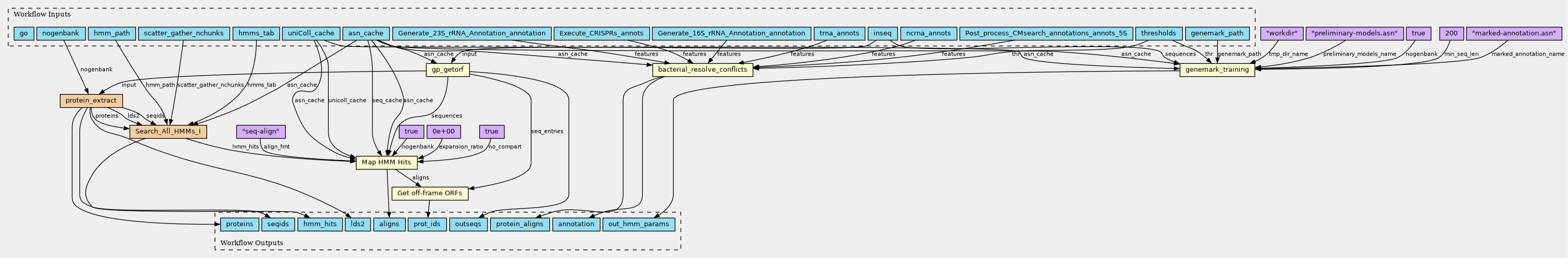 Workflow: Bacterial Annotation, pass 1, genemark training, by HMMs (first pass)