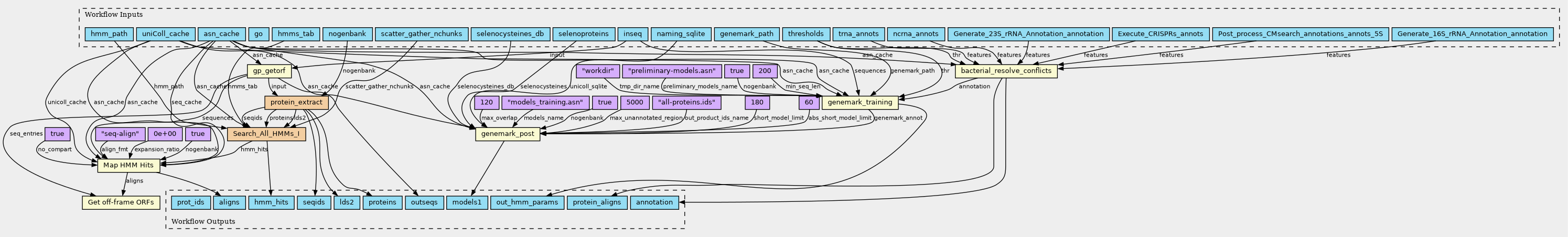 Workflow: Bacterial Annotation, pass 1, genemark training, by HMMs (first pass)