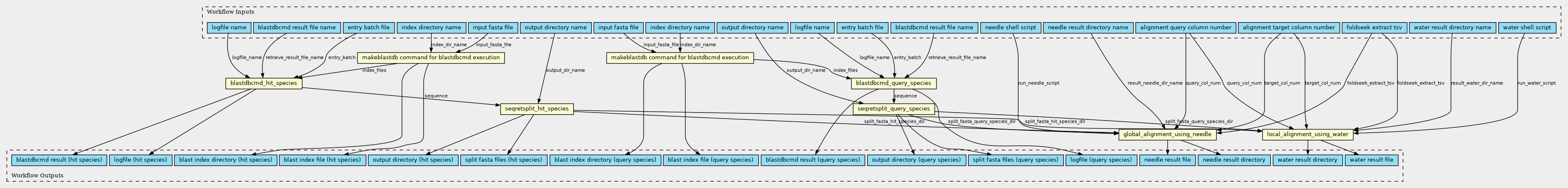 Perform pairwise alignment of protein sequences for pairs identified by structural similarity search. retrieve sequence from blastdbcmd result makeblastdb: ../Tools/14_makeblastdb.cwl blastdbcmd: ../Tools/15_blastdbcmd.cwl seqretsplit: ../Tools/16_seqretsplit.cwl needle (Global alignment): ../Tools/17_needle.cwl water (Local alignment): ../Tools/17_water.cwl